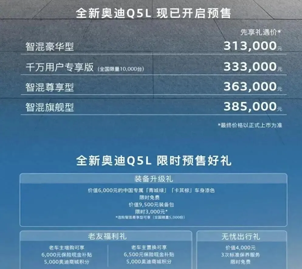 姐妹们,听我说!奥迪Q5L预售直接杀到31.3万,比老款砍掉3.7万。豪华SUV价格底线被彻底撕开,这波操作太狠了。为啥奥迪这次不玩虚的?点开就知道。