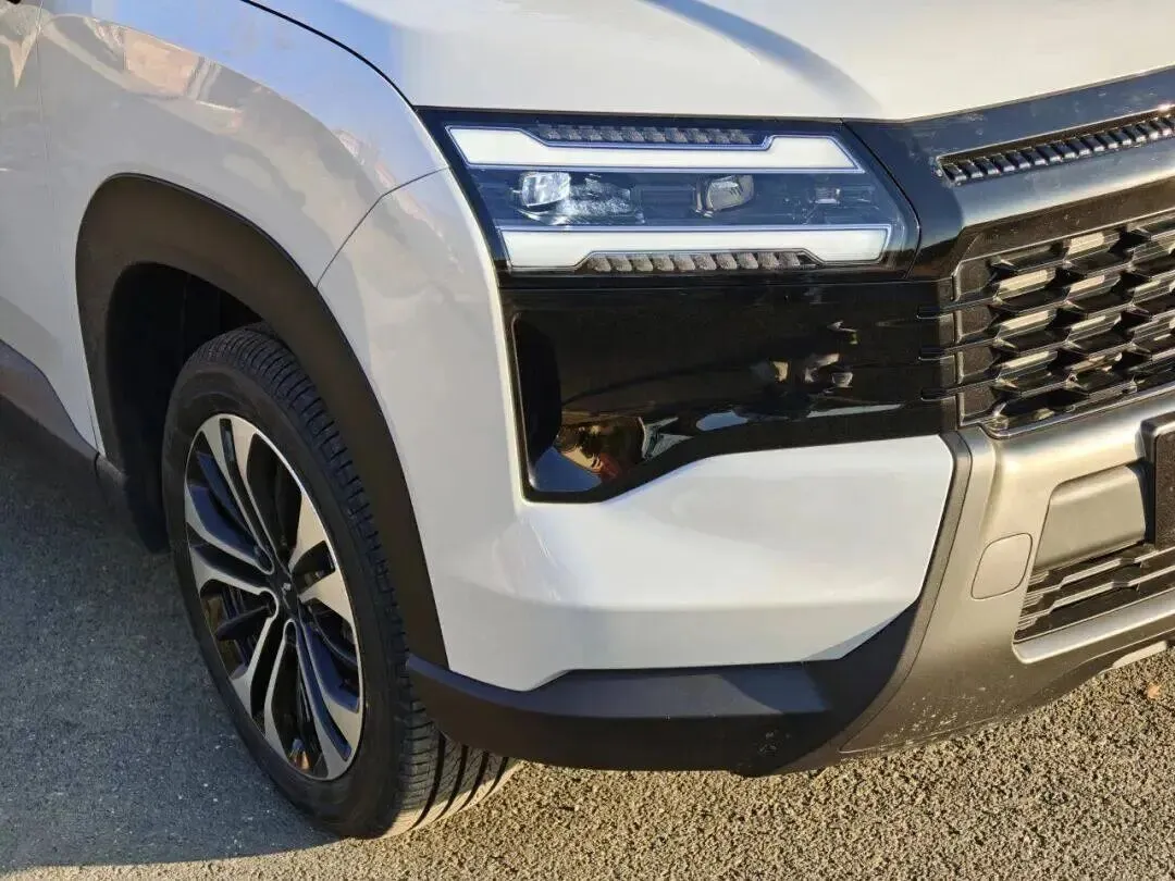 搭配偏直线的肩线、宽轮眉,看着就干净利索。特别那对X型大灯,夜里特拉风,有点“灯厂”味道。唯一的小槽点是胎宽只有215,看着略窄,但正常驾驶没问题。真要上山越个野,换一套就行。