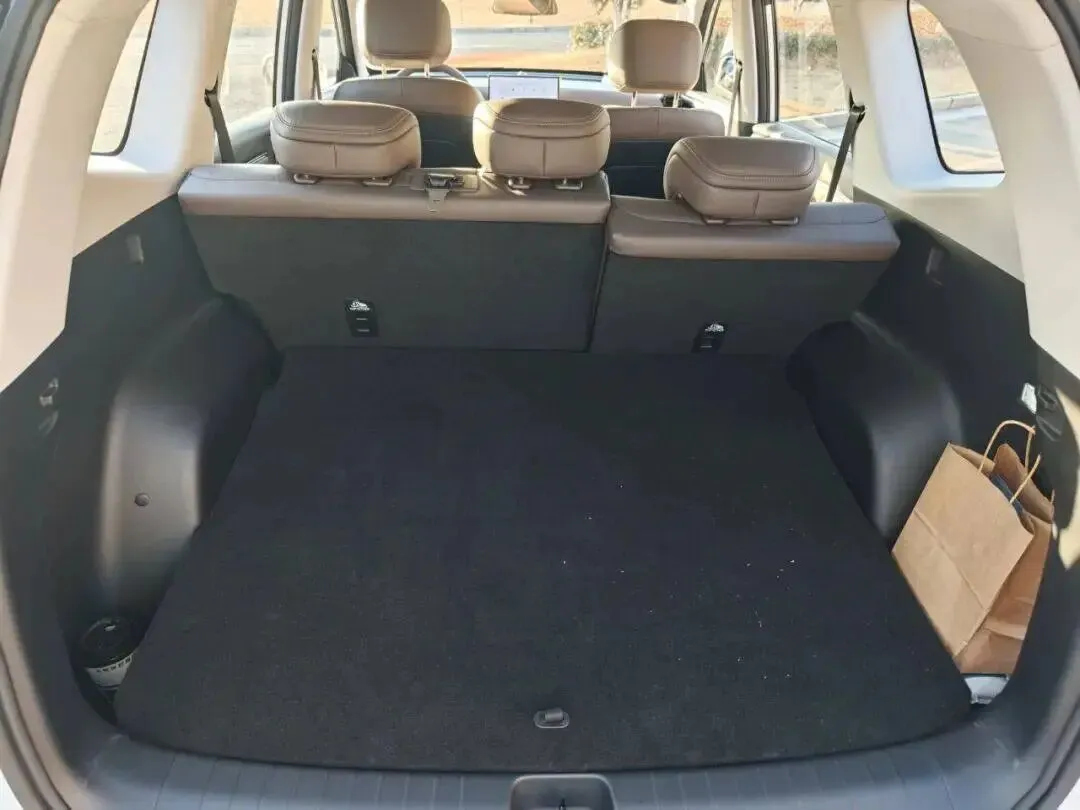 关键它的空间灵活性太强了。前排能放平,变“床车”;后备箱常规容积 763L,加上隐藏下沉区一共 947L。第二排放倒后更夸张——直接 1945L。装婴儿车、电视、行李箱都小意思。