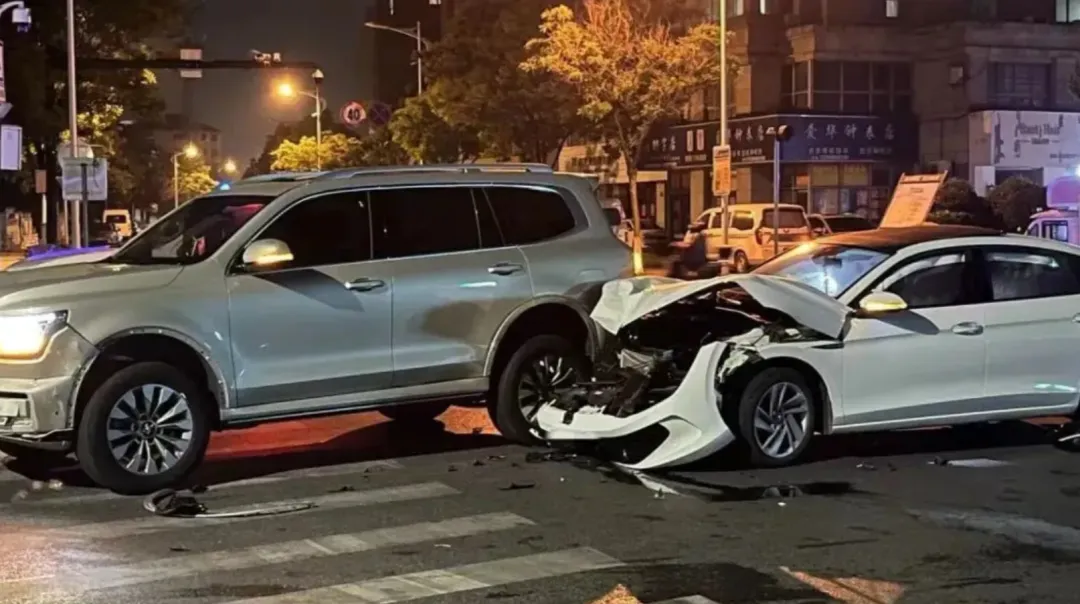撞车之后,朋友的途昂除了驾驶门有些变形,人在车里基本没事,就是受了点惊吓。但那台轿车就惨了,前机盖直接报废,驾驶员腿部还骨折了。