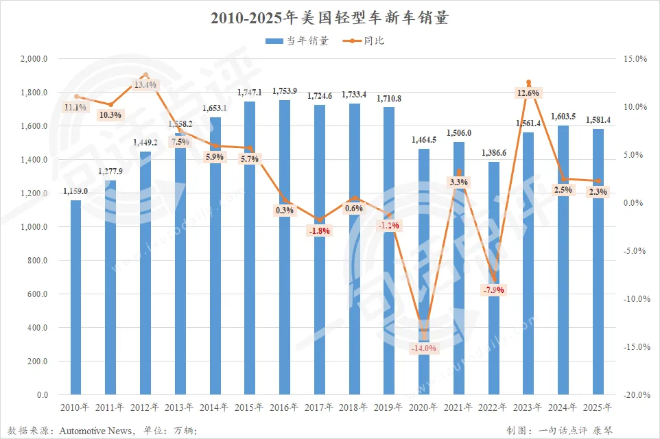 值得注意的是,目前捷豹路虎和奔驰等部分车企暂未公布成绩,参考2024年这两家主销车企的销量之和为49.4万辆,实际上2025年美国轻型车新车总销量应该达到1630万辆左右。