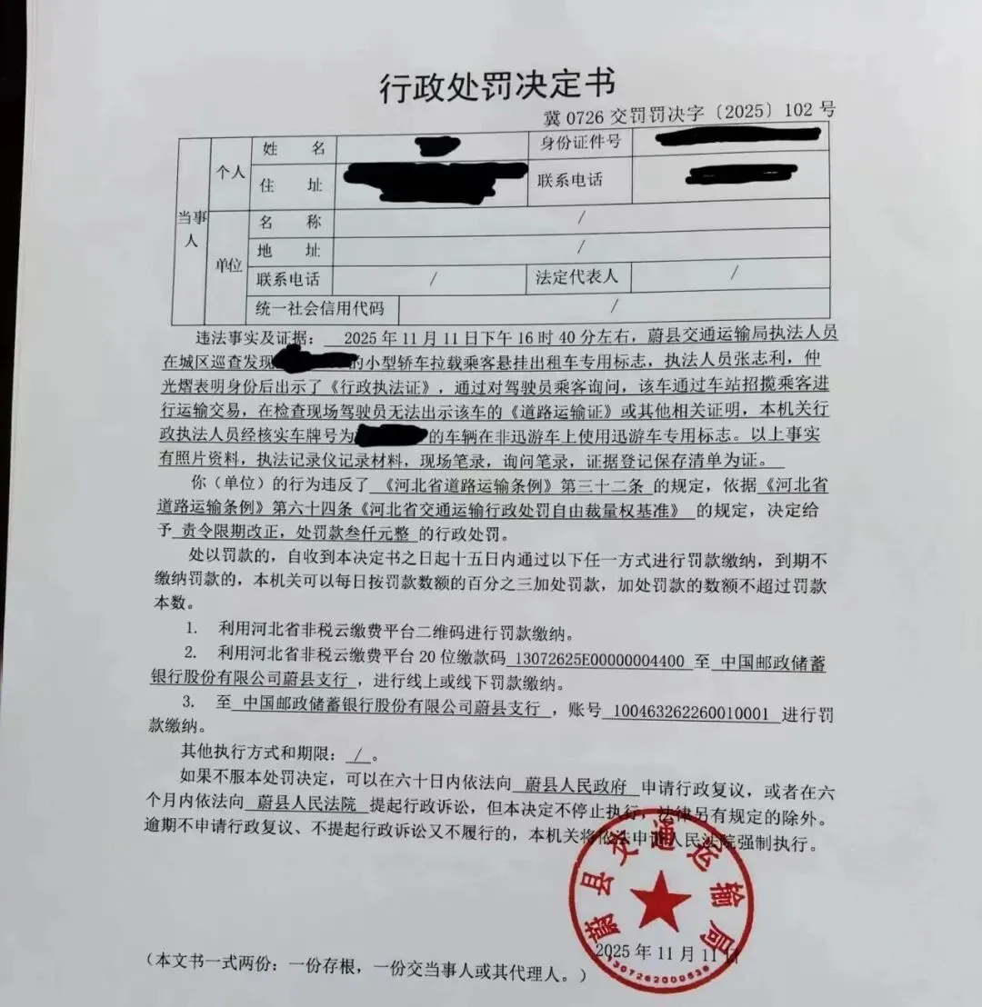 蔚县一小型轿车悬挂专用标志行为 罚款3000