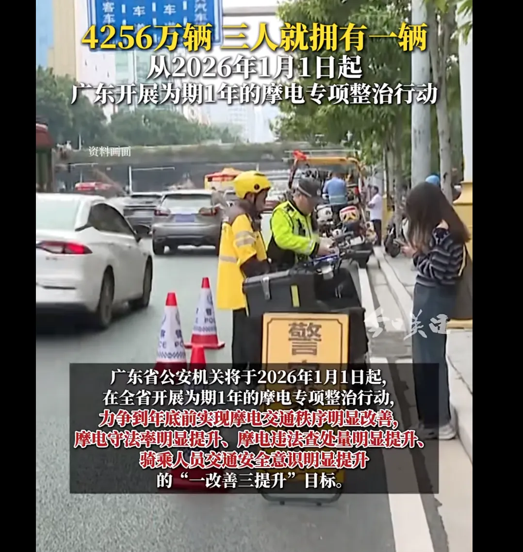 2026年1月1日起,广东省公安厅在全省范围内开展为期1年的电动自行车、摩托车违法专项整治行动,一时间引起了广大车主们的热议!