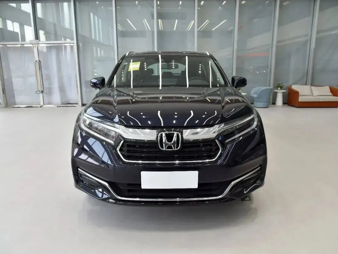 冠道这外形,不玩虚的。整车延续了典型的本田家族风格,前脸那块大尺寸进气格栅,配上熏黑饰条,看着就“狠”。镀铬横条贯穿两侧大灯,视觉上让车头更宽、更有力量感。配上“L”形日行灯,点亮后识别度直接拉满。LED自动大灯、智能远近光全系标配——在这个价位,能做到这个科技水准,确实厚道。