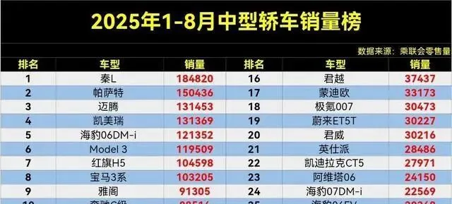 曾经,中型轿车市场是合资的天下——帕萨特、凯美瑞、雅阁,稳得像三座大山。