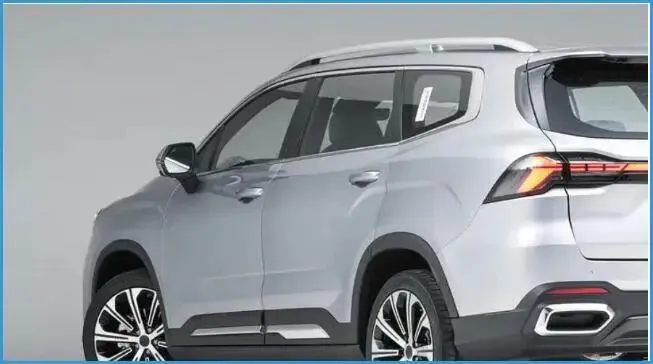 侧面线条依旧是典型的燃油SUV轮廓,前后轮眉采用外扩设计,让整车更有力量感。机械门把手与车顶行李架被保留下来,实用性和可靠性依然在线。轮毂为多辐式造型,尺寸达到19英寸,兼顾颜值与通过性。车窗饰条采用烤漆+镀铬组合,多层喷漆工艺让车漆在阳光下的光泽更细腻。