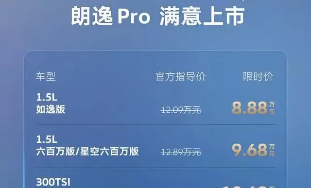 大众终于低头:朗逸Pro降到11万,还能撑多久?