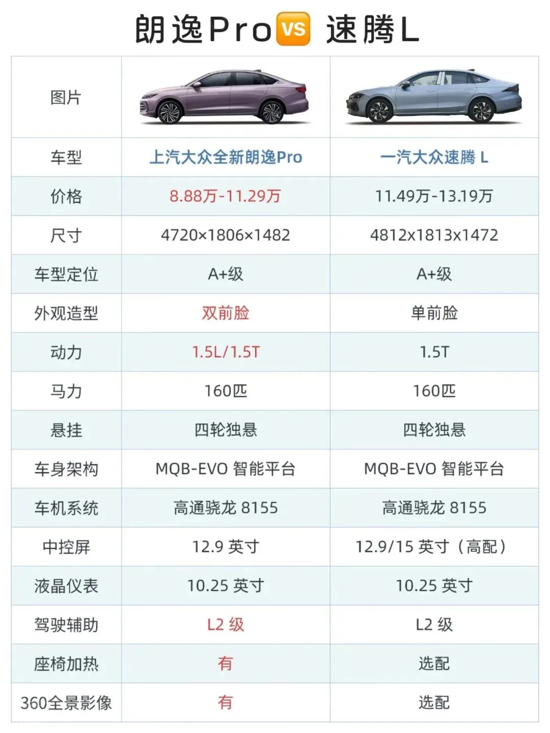 同样是德系 A + 级四轮独悬家轿,相同的定位和配置,朗逸 Pro 8.88 万的起售价,比速腾 L 便宜两万多,花更少的钱享受相同的配置,这性价比诚意满满!现在还送整车终身质保、两年零利率、置换补贴 4000、赠送数字钥匙等福利,这谁能不心动啊!
