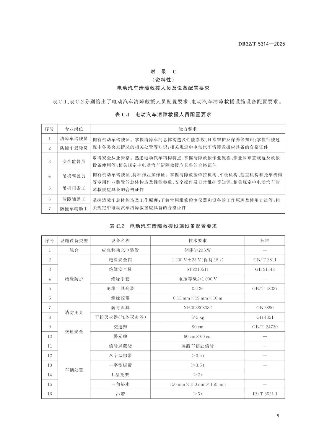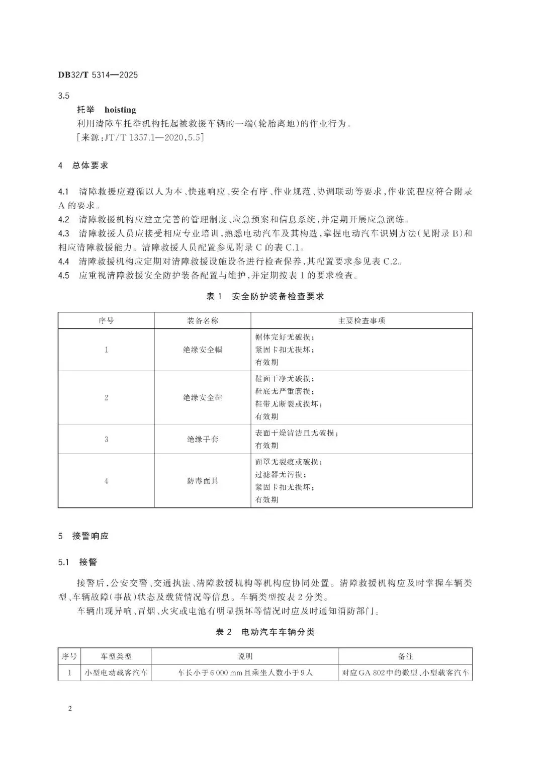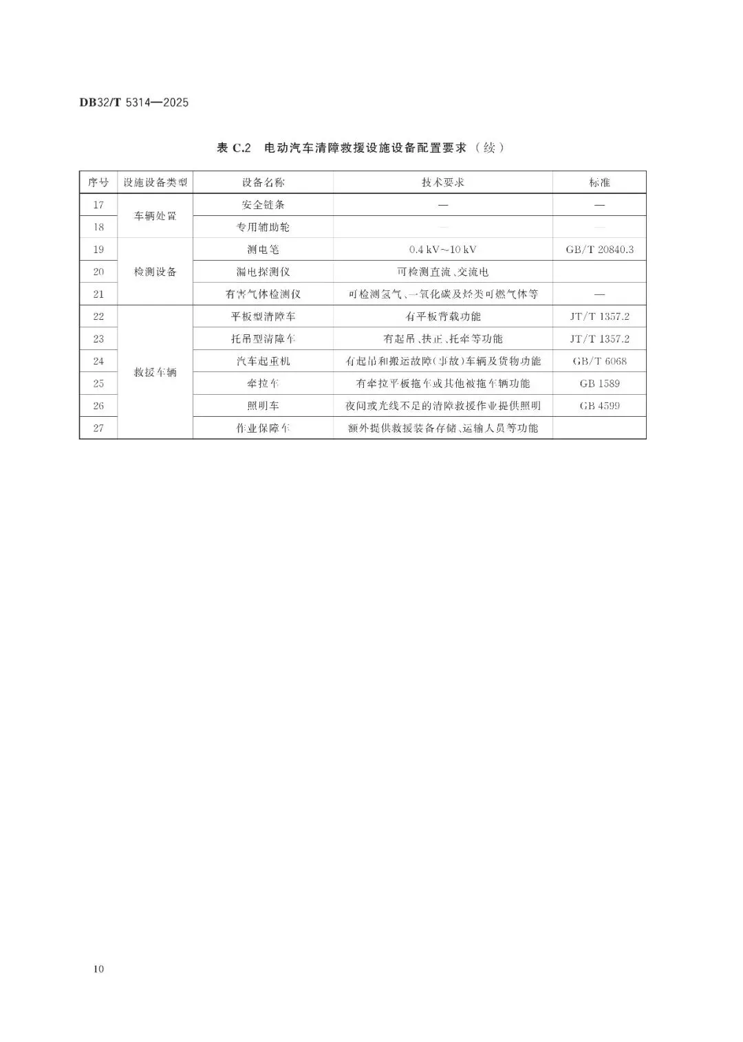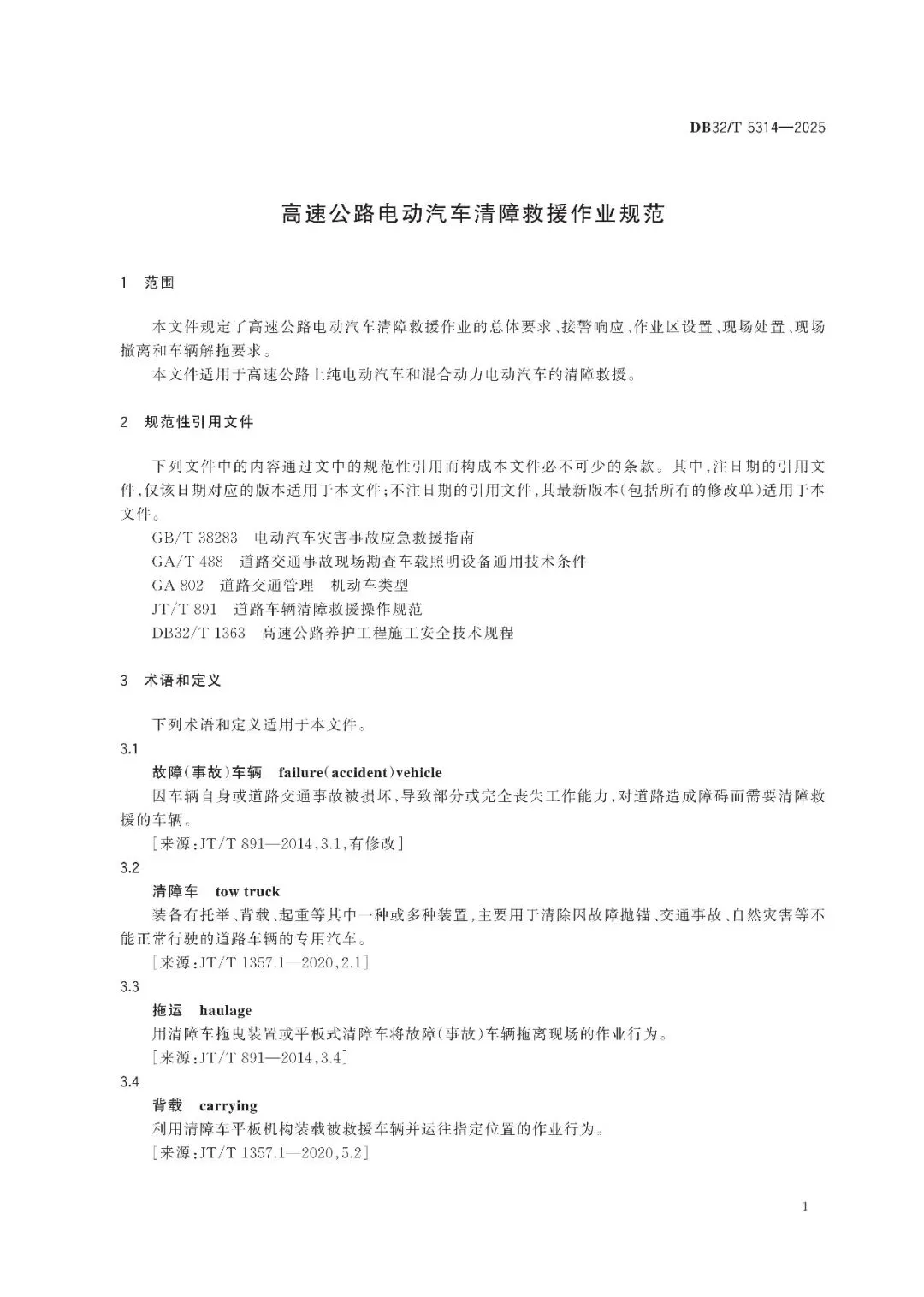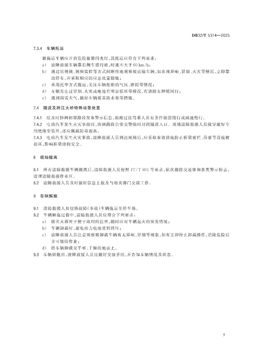 >江苏省地方标准《高速公路电动汽车清障救援作业规范》(DB32/T 5314-2025)