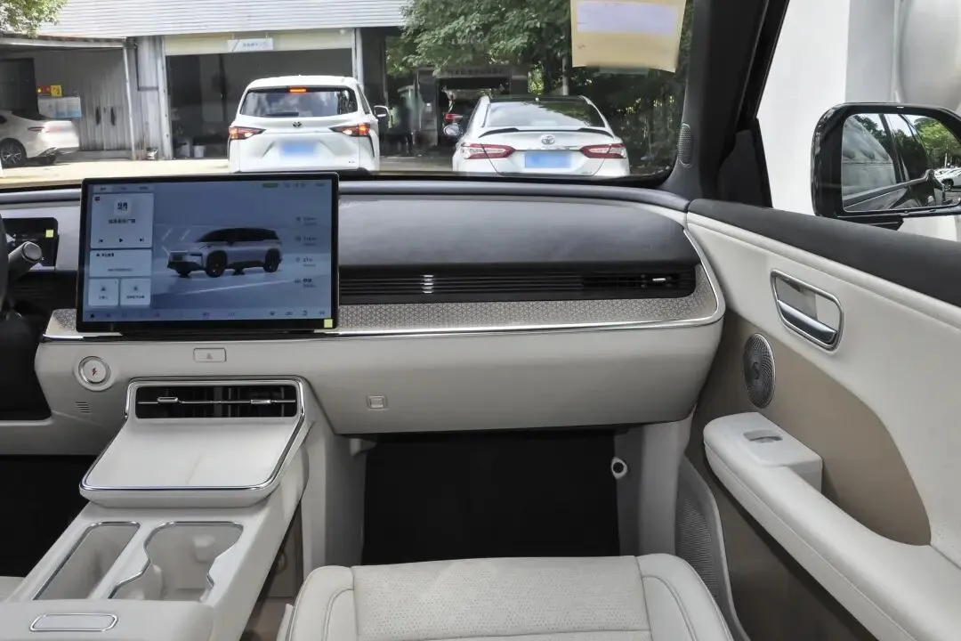 内饰采用全新座舱风格,中控台是双层设计,提供活力橙、雅致米、典雅黑三种风格。全系标配14.6英寸悬浮式中控屏、8.8英寸液晶仪表和双辐多功能方向盘。车机系统搭载高通骁龙8155芯片,支持四音区语音识别、语音车控、智能在线导航、智能场景、数字钥匙、OTA远程升级等功能。