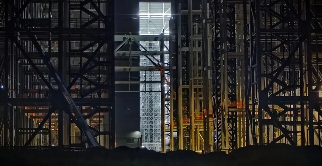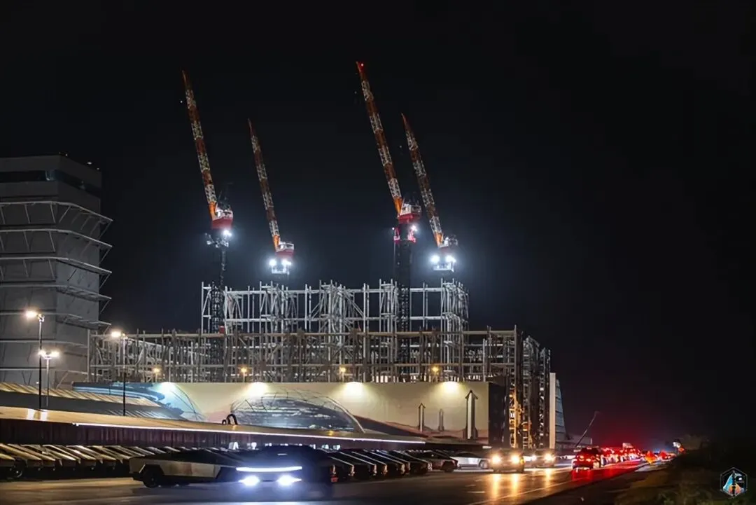 - 星舰39号出现在Giga Bay施工现场,周围完全被脚手架包围。截图来自AVID Space(@LabPadre)的直播。