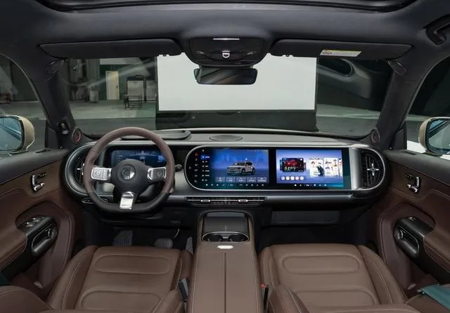 先聊动力系统。精灵#5 EHD用的是雷神电混2.0,1.5T发动机最大功率120kW,电机200kW,三挡DHT混合变速箱。官方馈电油耗4.4L/100km,发动机热效率高达47.26%。这个数字,放在国产混动阵营里都是拔尖水平——比如比亚迪DM-i主打经济,发动机热效率一般在41%左右。实际试驾下来,动力响应不像日系混动那样温吞,低速靠电机,高速切换平顺,城市通勤、偶尔高速都没压力。值得一提的是,奔驰并未回避“技术外采”,而是直接用最成熟的国产混动方案,搭配AMD高算力车机(性能比高通8155还高一倍),反而说明它对智能座舱的重视,从“造标”转向“造体验”。