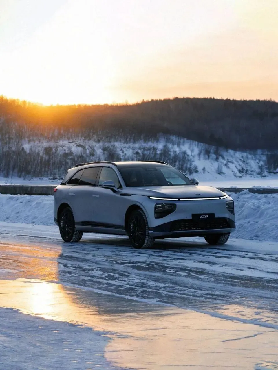 首先,这位“预言家”的卖相,走的是一种“科技从容”风。外观延续了G9家族那种简洁而富有未来感的设计,线条流畅有力。这次主打的“月光骑士”限定版,那种哑光银的车漆,在雪地官图里确实显得格外优雅、沉稳,有种不张扬的高级感。它不像理想L9那样追求居家的极致温暖,也不像问界M9那般强调庄重的气场,小鹏G9的设计语言更偏向于都市精英的审美——理性、精致,且充满科技暗示。