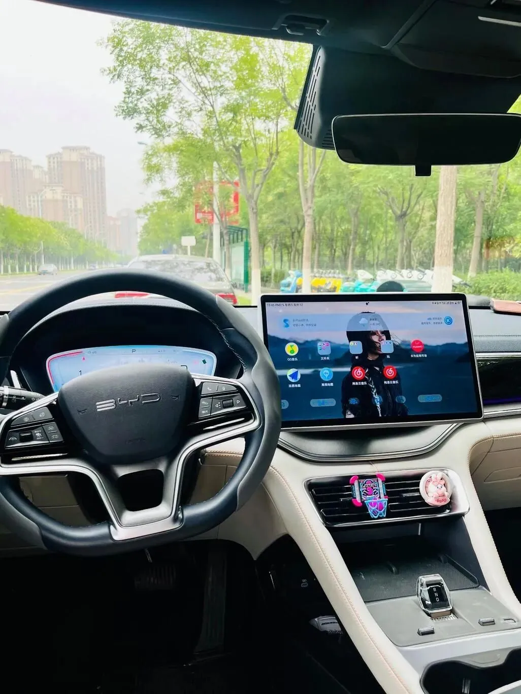 坐到车.里.第.一感觉是,用料还行,但不完.美。我手.一.摸门板上半部分是软的,但是.往下一点就开始变硬.了。这种成本控制.肯定是有的,不过考.虑.到它的价格,也能理解。中控那块.屏幕挺大,但是下方那几个实.体按键有点松松的,轻轻一按就感觉塑.料感.挺强。我.还用指甲敲了.两下,真是那种“咚咚”的.空心.声。方.向盘倒是不错,细腻度比我之前试的长安那.台好多.了,打起来.也轻。