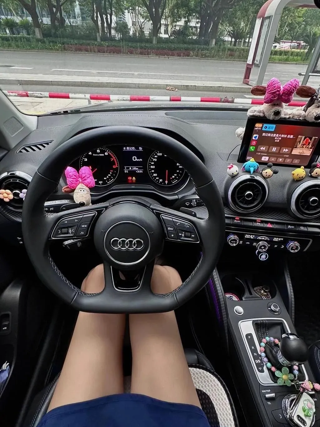 坐.进车内,这个.内饰就明显能.看出来奥迪的.功底。它虽.然不是.那种豪华堆料的感觉,但整体设.计很干.净,手一摸上去的地方多数是软的。空调出风口那一圈红色装饰挺提神,然后屏幕虽然不.大,但系统流.畅度还.不错。我.就有个槽.点,这个.中控台实在有点保守,像我手机都能比它屏幕大,不过好在操.作逻辑还是那套奥迪熟悉的风格。方向盘是三辐平底的,手感.特别粘,打方向的时候有.那种轻微阻尼感,我个.人是挺喜欢的。