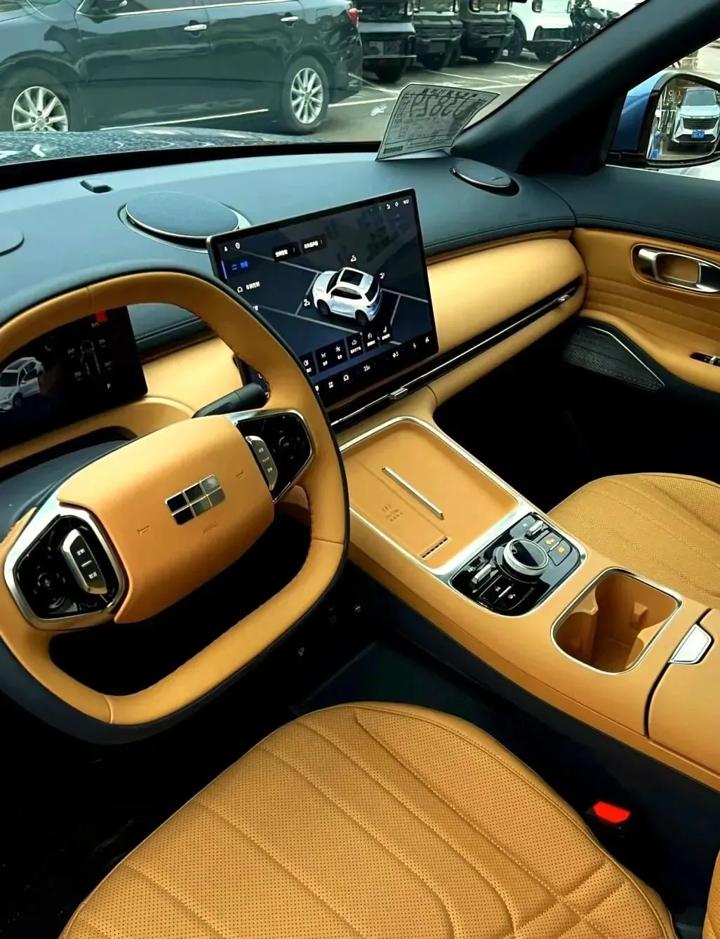 进到车内,第一反.应是——这内饰真不像.十.万块.的车。大.屏.很清晰,中控布局.对称,不乱。我拿手摸了.一圈,软包的范围比我想象的多,门板上那层皮的缝线挺整齐,手指一.抠.还能感受到那种.弹性。我用指甲.敲了几下下方塑料区域,还是.有点硬,不过这个价.位我也不苛.求太多。方向.盘尺寸适中,握.感圆润,就是个.人觉得稍.微细一点就更好了。