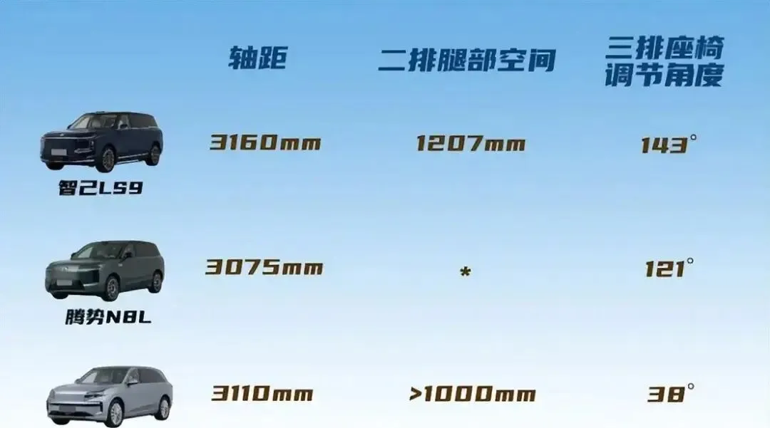 说实话,我朋友开腾势N8L也翻过车。上个月他带丈母娘自驾游,三排座椅硬邦邦的,老人坐得直哼哼。他发我消息:“冰箱是标配,但三排头空才800mm,孩子一坐就缩成虾米,全程哭闹。” 后来我试驾智己LS9,直接被圈粉:三排头部空间955mm,孩子能直起身子玩平板;二排腿空1207mm,我一米八的个子坐进去还能翘二郎腿。更绝的是,全系标配3把零重力座椅,乐道顶配才有一把,腾势只有顶配有。21.5英寸大屏,12L双开门冰箱,坐进去像进了移动五星级酒店——二排妈妈们刷剧、吃水果,三排娃躺着看动画,全程没一句抱怨。