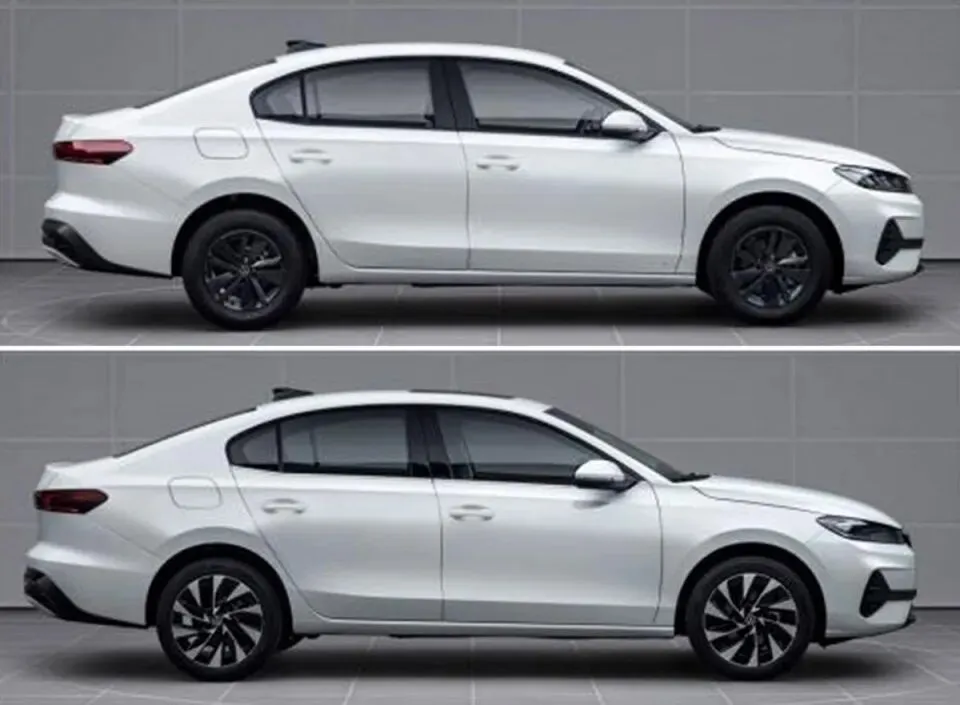 车身侧面造型很舒展,造型风格和宝来一致。尺寸方面,新车的长宽高分别为4702/1815/1484mm,轴距为2688mm,其中车身宽度和轴距与大众宝来保持一致。