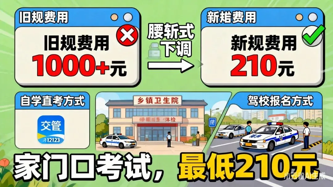 直接在“交管12123”APP或车管所报名,仅需支付考试费+工本费,合计210-250元,比驾校报名便宜数百元。注意:需自备加装副刹的教练车,练车时必须有合规教练陪同,严禁独自上路练车(属于无证驾驶)。