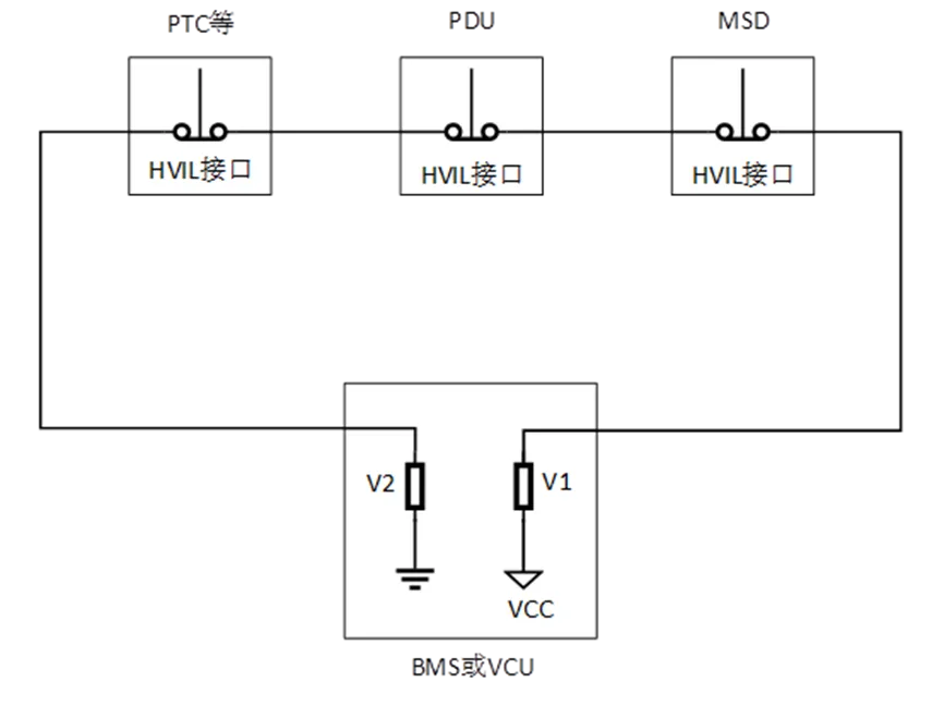 通俗来讲,就是通过低压来检测高压,即通过低压回路来监测V车辆高压器件、电气线路、连接器以及护盖的电气完整性。