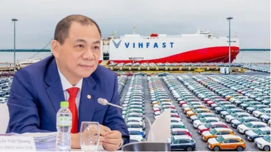 范日旺身后运载VINFAST电动车的巨轮