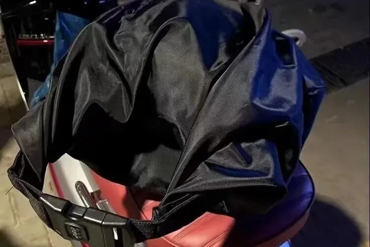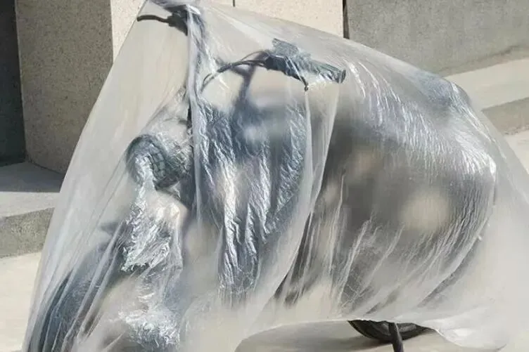 用的时候先把罩子抖开,别急着硬拽,先找车座那一圈松紧口.把松紧口套到车座前端,再往后拉,拉到完全包住座面,边缘要压到座底下,这样风一吹也不容易掀.接着把前面的部分往车把那边套,把刹车把和仪表那块也盖住,雨水才不容易往缝里钻.最后用手沿着边缘按一圈,让它贴紧一点,效果会更好.