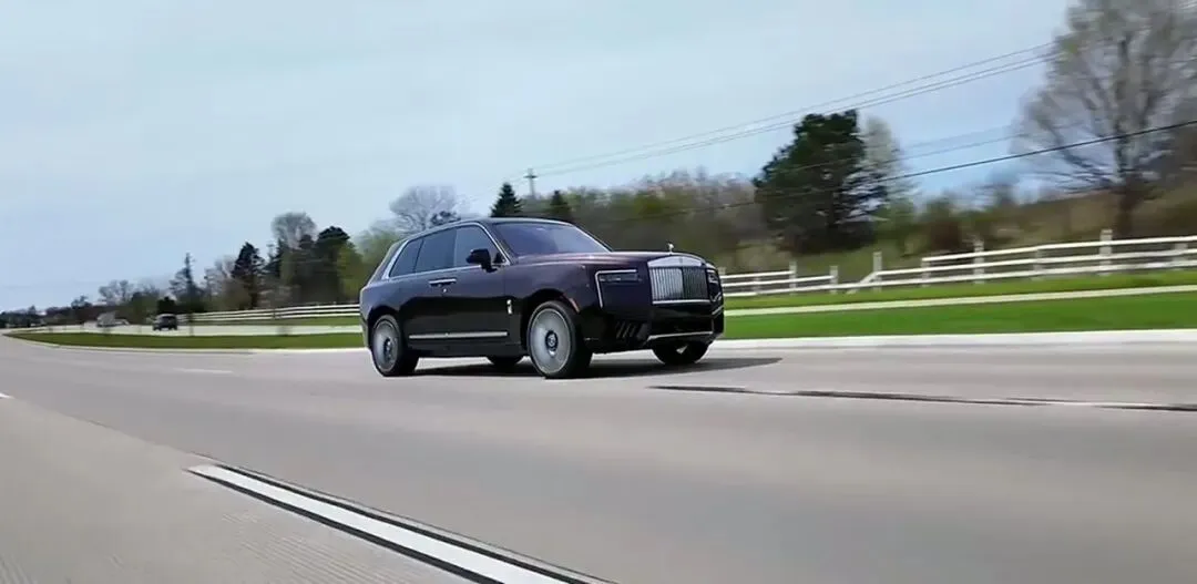 榜单的顶.端当然是劳斯莱斯库里南.。行驶在道路上的侧面视角,你能感受到这台车散.发出的那种不可撼.动的气势。劳斯莱斯的逻辑很简单既然.要做SUV,那就要做最贵.,最奢华,最有仪式感的那一.台。