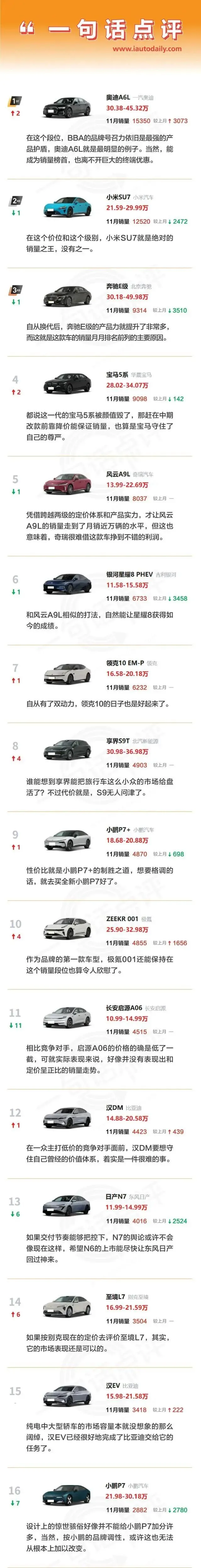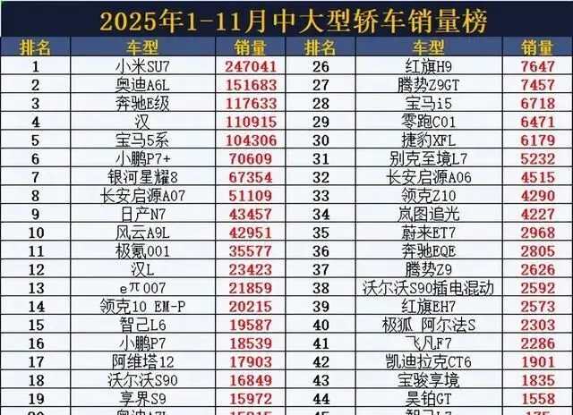 都说BBA要输了,但11月的中大型轿车榜单,却啪啪打了脸。