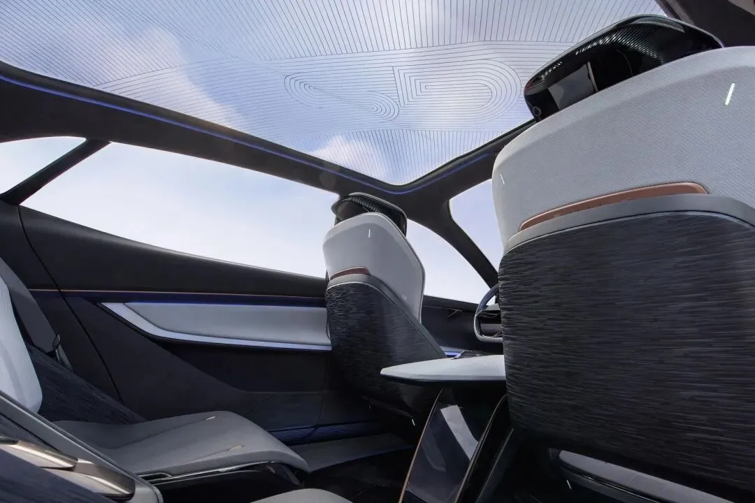 先说颜值,前.脸那个封闭式格栅.挺有未来.感的,但又不是那种科幻到飘的.感觉。大灯.特别细,延伸到翼子板那一段挺帅的,有点.上.一代Enspire概念车.的影子。侧面.线条很干净,我摸了.一下(展车嘛),腰线这一.段是特.别有力量感的那种,不像有的电车就是平平无奇。轮毂造型.不错,20寸放在它这个尺.寸上刚刚好,看起来挺厚实的,整.个姿态特别有精神。