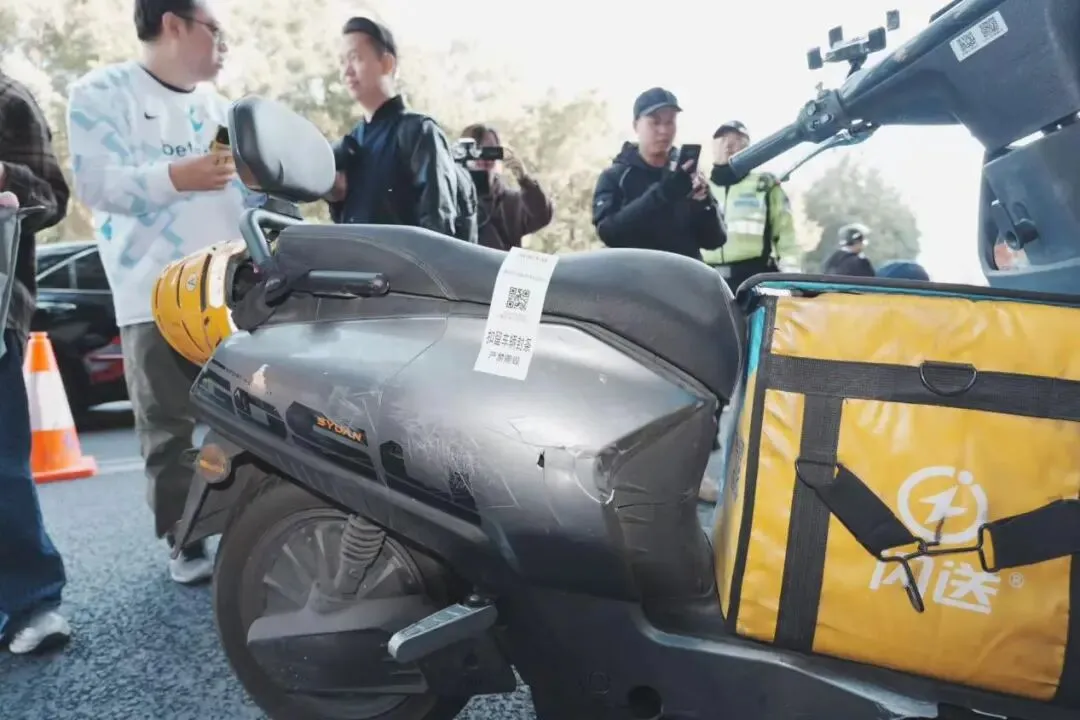 整治行动中,交警还查处了一起号牌悬挂不规范的案例:一名外卖骑手的车牌斜挂在车身左侧横杠上,自称“固定不住掉了一边”。该行为同样属于未按规定悬挂号牌,车主被依法处罚。