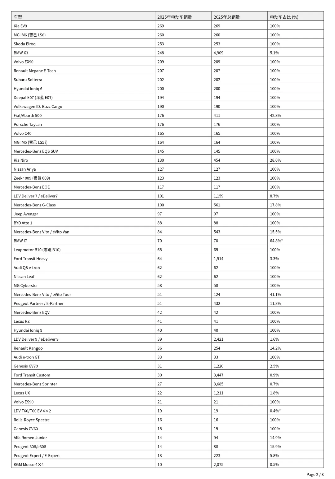 Kia EV5位列第四,Geely EX5排名第五。这对于两个较新的车名来说成绩斐然,其中EV5于2024 年上市,EX5则紧随其后于2025年推出。