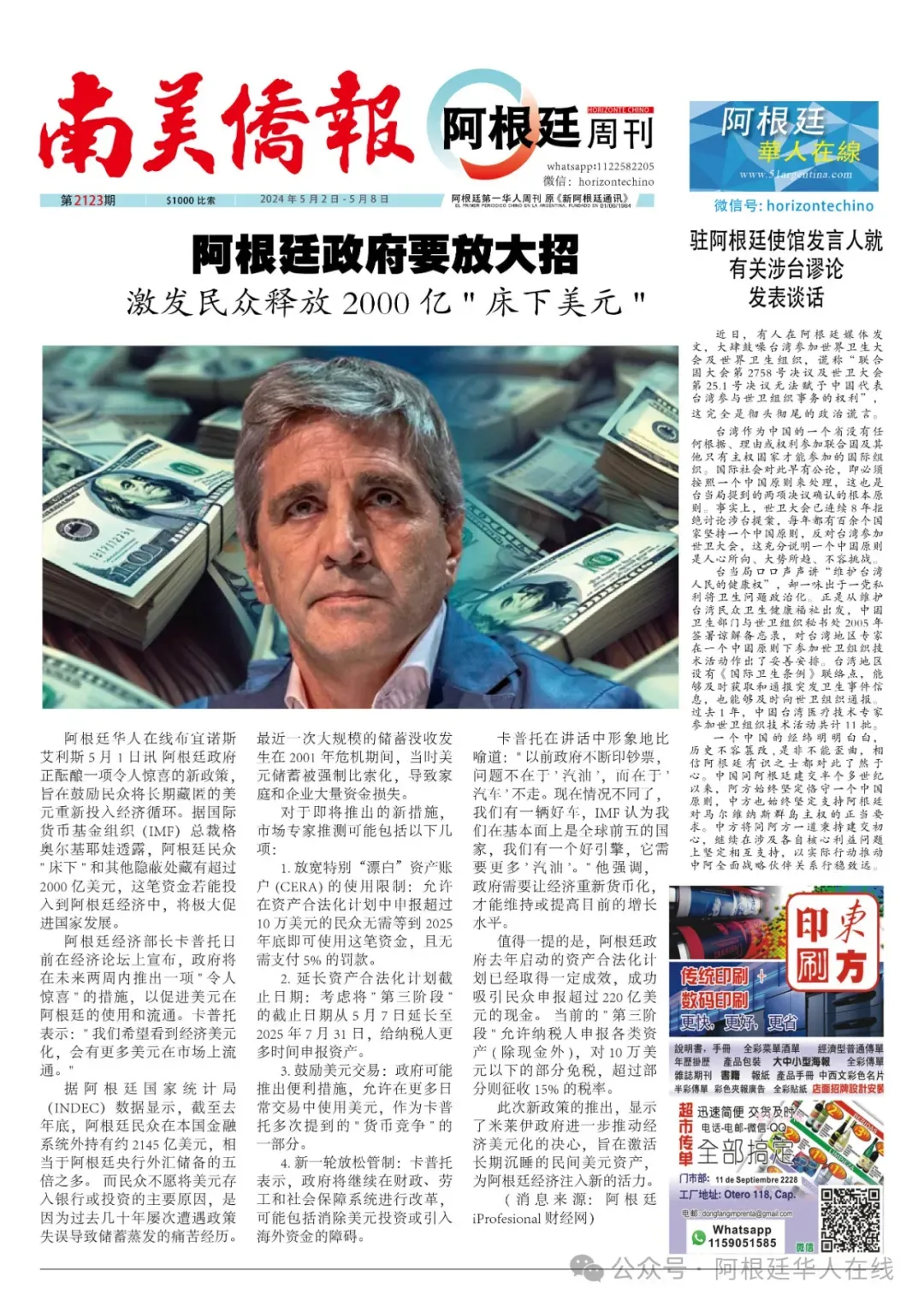 中国街销售点:Arribeños y Mendoza街角报刊亭南美侨报阿根廷周刊纸质报已经在中国街各大超市发行!欢迎读者免费索取!