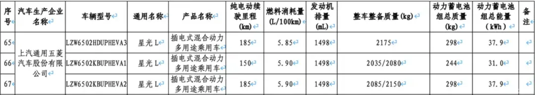 五菱家族的旗舰SUV——星光L,终于有新动静了!去年12月发布官图后,最近它出现在了最新一批免购置税新能源目录里,续航和油耗数据也第一次公开。