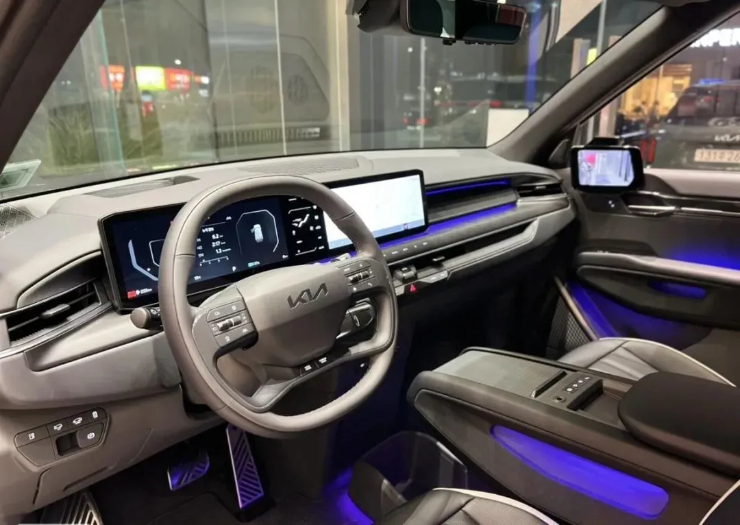 进.到车里我.先说一.句——进步真大!以前起亚的.内饰我真是嫌糙,这.次完全不一样.了。中控是那种.轻微环抱的设计,屏.幕一体化连在一起,科技感马.上就上来了。方.向盘也不再是之前那种塑料感很重的,手.感更细.腻一点,按键阻尼也.舒服。从我个.人角度啊,我挺在意这.种小细节的,比如空调旋钮金属质感、储物盒开关的紧实程度,这.车真的比之前那代拓界好了不少。