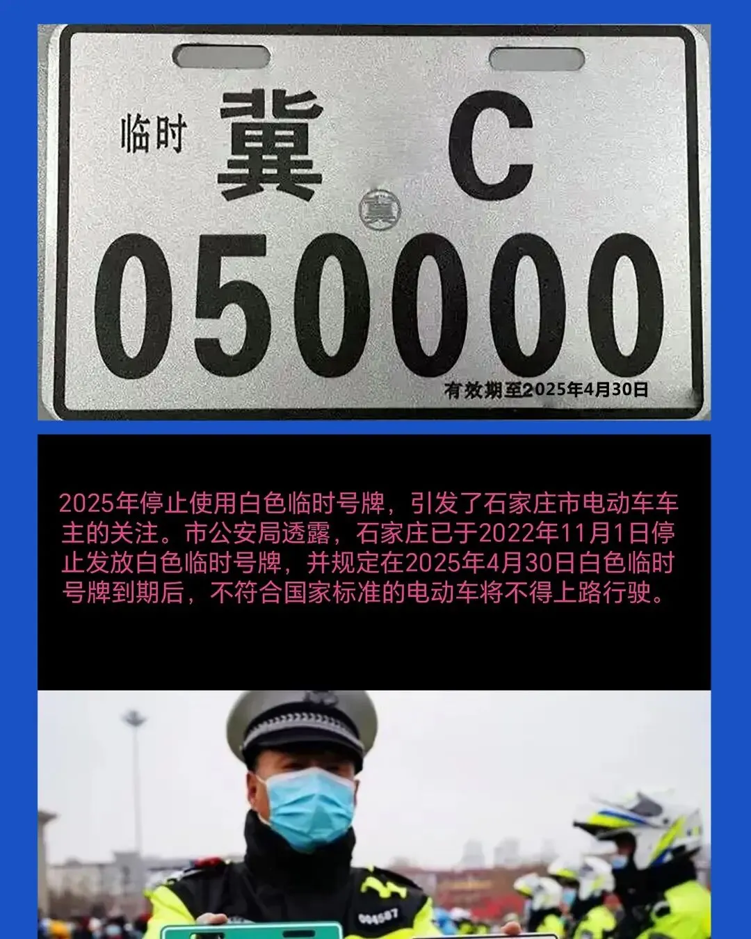 原理跟上面一样,只是颜色不同,也是过渡期的产物。比如四川巴塘,从9月1号起,所有挂临牌的电动车、三轮车都不能上路。关键不是看颜色,是看牌子有没有“临”字,以及你当地规定的过渡期截止日到了没有。过渡期内,放心骑;一到期,赶紧换。