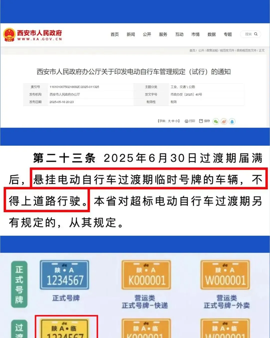 这种牌子在很多地方都发过,上面通常有个醒目的“临”字。它就像一张“临时居住证”,给那些不符合最新国标,但已经买回家的电动车一个缓冲期,比如3年或5年。期限一到,“居住证”就失效了。像江西抚州,已经明确从9月1日起,这种白底蓝字的临牌三轮、四轮车就不能上路了。王姐家那块就是这种,她所在城市的过渡期正好到8月底结束。