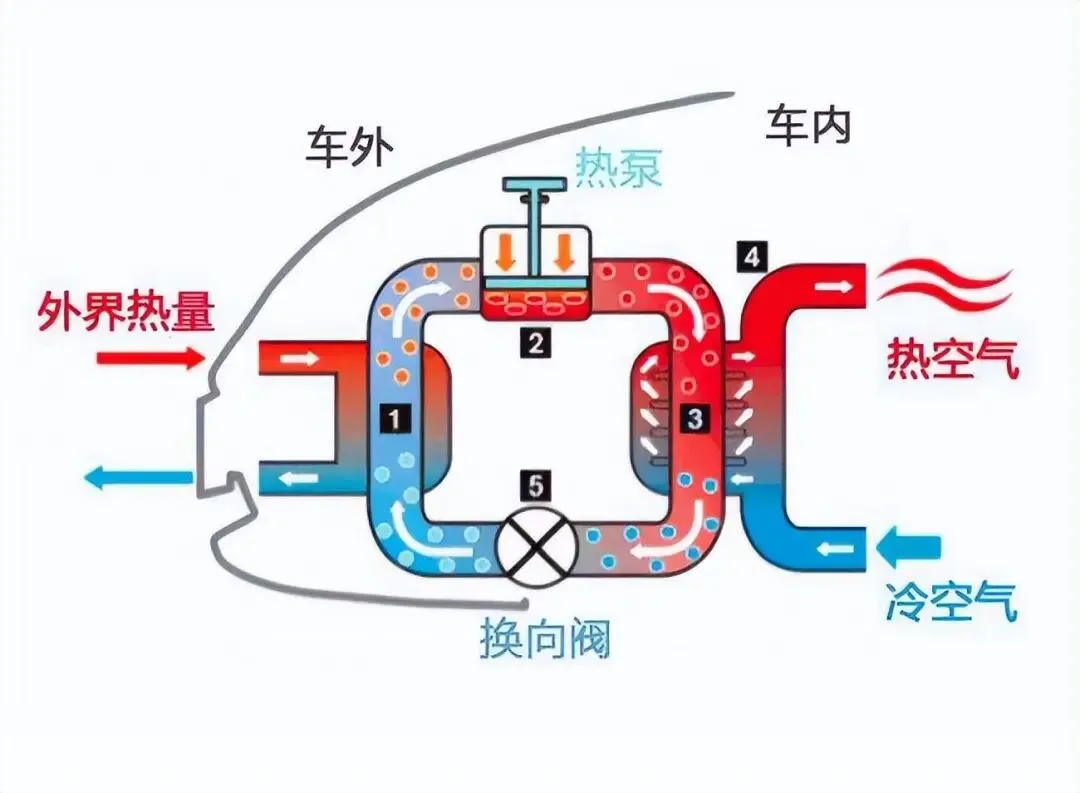 热泵就是“反着用的空调”——把外界冷空气里的热量“搬”到车里来;