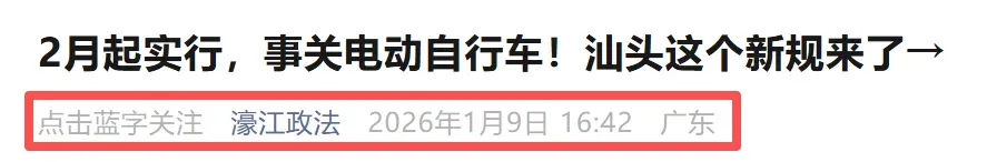 在广东汕头,当地《汕头经济特区电动自行车管理条例》将于2026年2月1日起施行,在《条例》第3章特别对电动自行车通行、停放、充电以及相关管理活动做出详细规定,其中有几个检查重点,各位车主务必牢记,并引以为戒,避免上路被罚。具体我我们来看:对于电动车来说,任何未经批准的改装,无论是更换动力系统、增加电池容量,还是加装非标配件,都可能对车辆造成负面影响,甚至埋下安全隐患。因此,《条例》中明确:车主不得驾驶非法改装、加装、拼装的电动自行车上路;发现驾驶人非法改装车辆的,应当督促其停止使用、并恢复原状。在载人方面,则要求驾驶电动自行车只可以搭载一名十六周岁以下的未成年人,乘坐人应当在驾驶人后方正向骑坐;搭载身高一点二米以下儿童的,车辆应当安装有固定安全座椅。同时,驾驶租赁电动自行车不得载人。在道路上停放电动自行车的,应当在规定停放区域有序停放;没有设置停放区域的,不得占用盲道,不得妨碍其他车辆和行人通行。从而确保道路的畅通无阻,减少交通事故的发生。总结:2月起,“2禁3必查”的执行,对电动车、三轮车、四轮车上路各环节都做出了要求。作为车主应自觉遵守这些规定,不仅是为了避免处罚,更是为了自身与他人的生命安全负责。对此,大家怎么看待的?欢迎评论区给我们留言讨论!