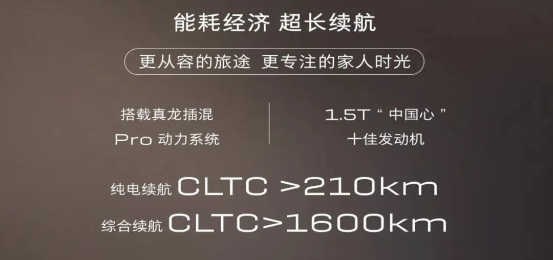 根据官方信息,这款车在CLTC工况下的纯电续航超过210km,满油满电状态下综合续航更是超过1600km。