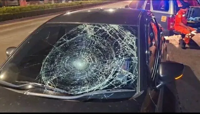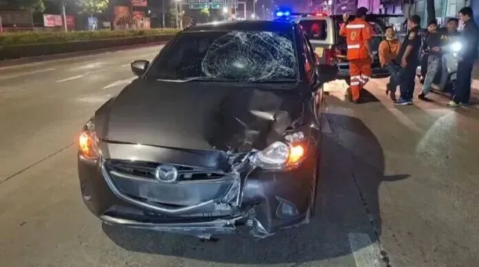 死者名为阿兰亚,47岁。在约100米外,发现涉事对方车辆为一辆绿色马自达2,曼谷牌照,车头有碰撞刮痕,前挡风玻璃破裂成一个大洞。