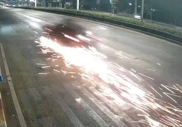 警方调取附近监控发现,死者当时乘坐伤者驾驶的摩托车,正使用最左侧车道。随后,涉事汽车在第二条车道上高速行驶,突然转向猛烈追尾摩托车,导致后座女子死亡、驾驶员受伤,随后车辆起火并拖行摩托车超过100米。