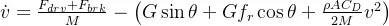 编辑; Fdrv 和 Fbrk 分别是电动机提供的机械力和车轮摩擦制动器提供的力; G是重力加速度;