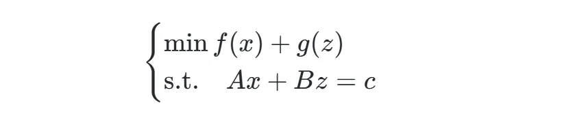 交替方向乘子法(ADMM)是一种分布式凸优化算法,通过分解全局问题为多个子问题并交替优化,结合了对偶上升法的可分解性和增广拉格朗日方法的收敛性。其标准形式为: