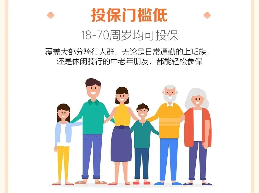 覆盖大部分骑行人群,无论是日常通勤的上班族还是休闲骑行的中老年朋友,都能轻松参保。