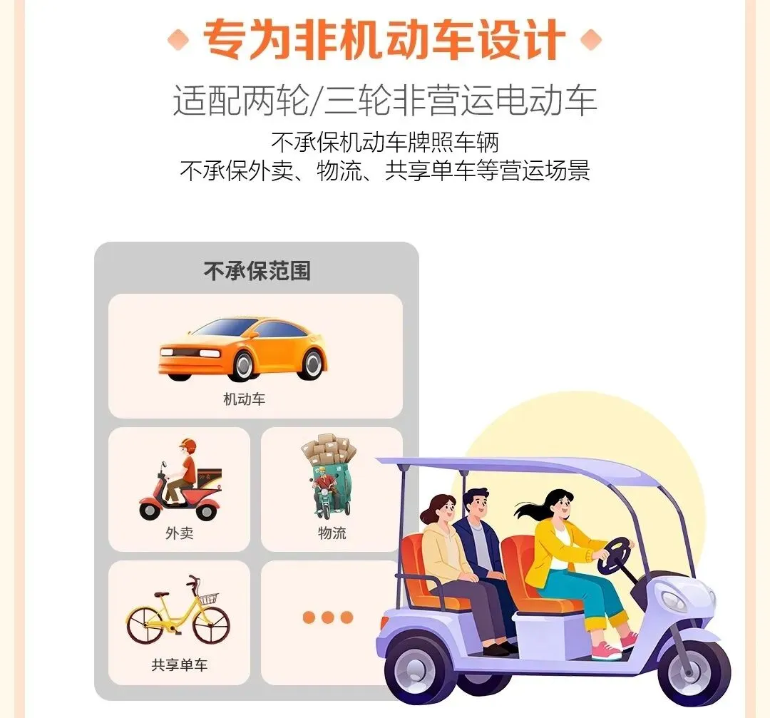 承保范围:适配两轮/三轮非营运电动车。