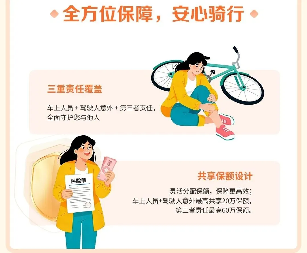 3、全方位保障,安心骑行第三者责任覆盖。