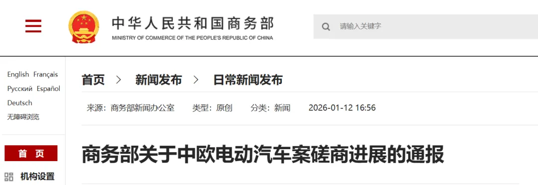 商务部关于中欧电动汽车案磋商进展的通报