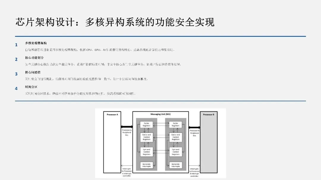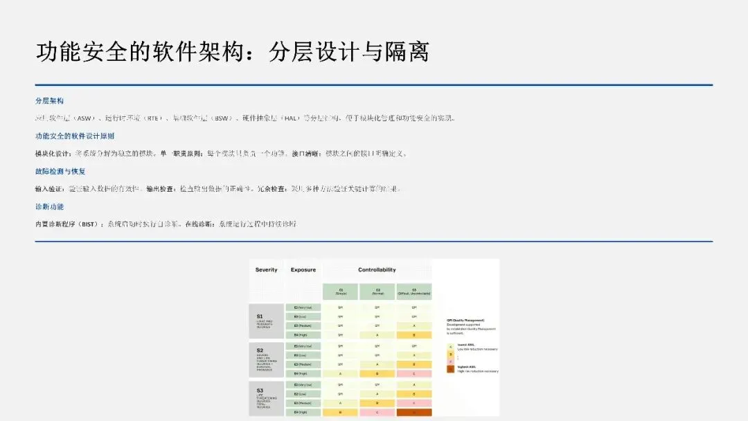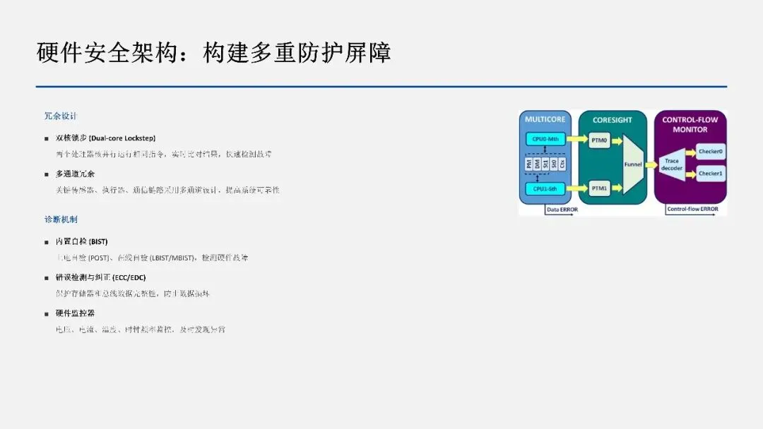 3. 硬件、软件、系统的协调设计是实现功能安全的关键,需要在芯片架构、软件架构和系统集成各个层面进行考虑。