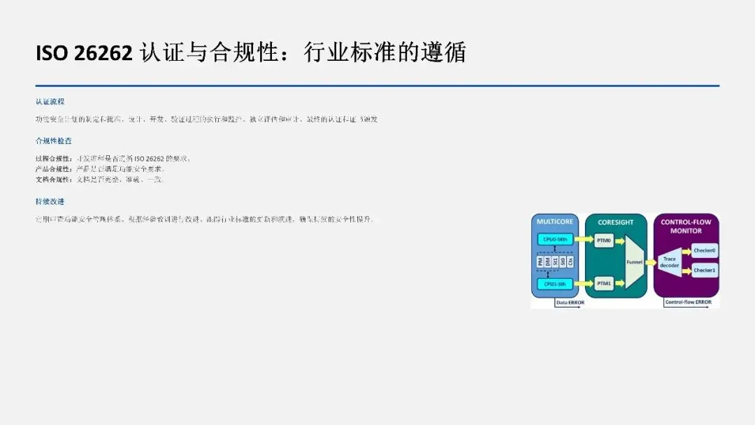 ISO 26262 认证是由第三方认证机构进行的独立评估,验证系统的功能安全符合标准要求。