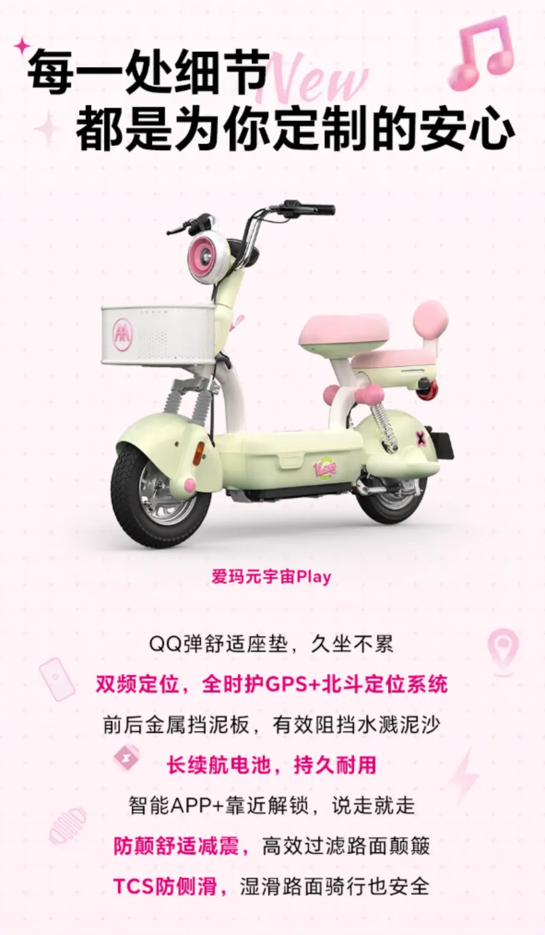 爱玛推出多款新国标电动车,包括爱玛元宇宙 Play、爱玛元宇宙 Lite 2.0、爱玛棒棒糖、爱玛酷骑S、爱玛小金豆等车型。